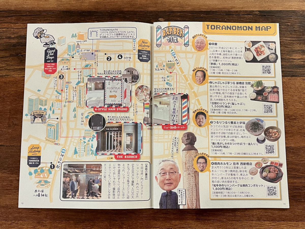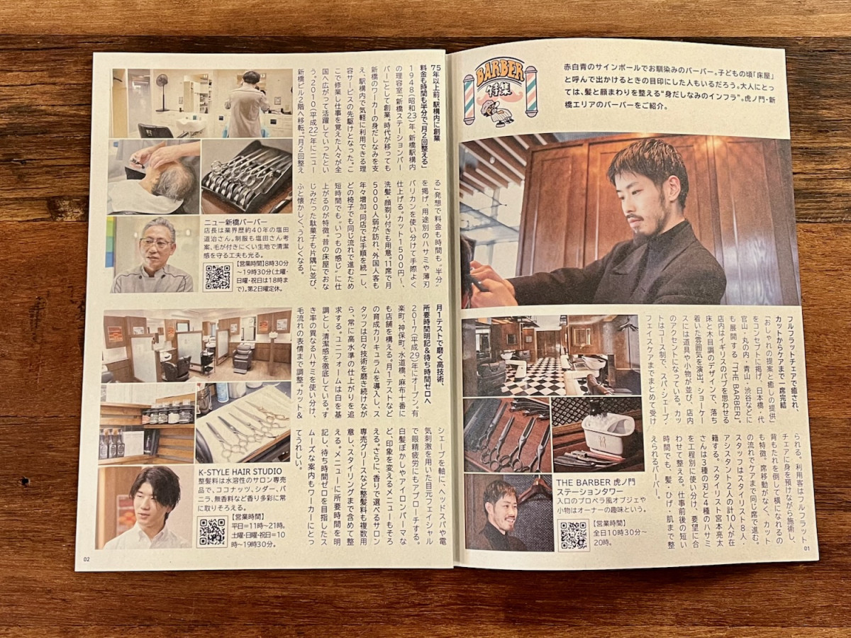 今号のブックカバーは、1948(昭和23)年創業の「ニュー新橋バーバー」と、2006(平成18)年創業の「THE BARBER」のロゴを採用。新橋で歴史を刻む老舗と、虎ノ門ヒルズ ステーションタワーに入居する“第三世代”が並び、古さと新しさが同居する虎ノ門らしさを静かに映します。