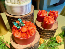 今年のクリスマスケーキは、クリスマスリースをイメージし、アールグレイとパッションフルーツを重ねたショコラムースが特徴の「ウィンタークラウン」(7,050円)、伝統工芸品の「組子細工」をモチーフにした「ブッシュ ド ノエル」、バニラの香りとかんきつ系フルーツを合わせた「ライトバニラ」(以上、7,500円)、福岡県産の「あまおうイチゴ」を使った「プレミアム ストロベリーショートケーキ」(8,000円)など。ピースサイズの「モンブラン」「抹茶オペラ」「マロン&ブルーベリー」(以上、750円)をそろえた「サイレントスノー」も用意する。