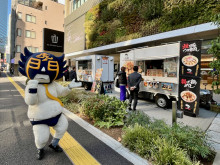 当日は、「1st ANNIVERSARY SPECIAL EVENT」と銘打ち、建物のフロアごとにイベントを開催。1階では、トヨタ・レクサスの電気自動車から給電して調理するキッチンカー2台が出店すた。歩行領域モビリティ「C+walk(シーウォーク)」の体験会も行った。