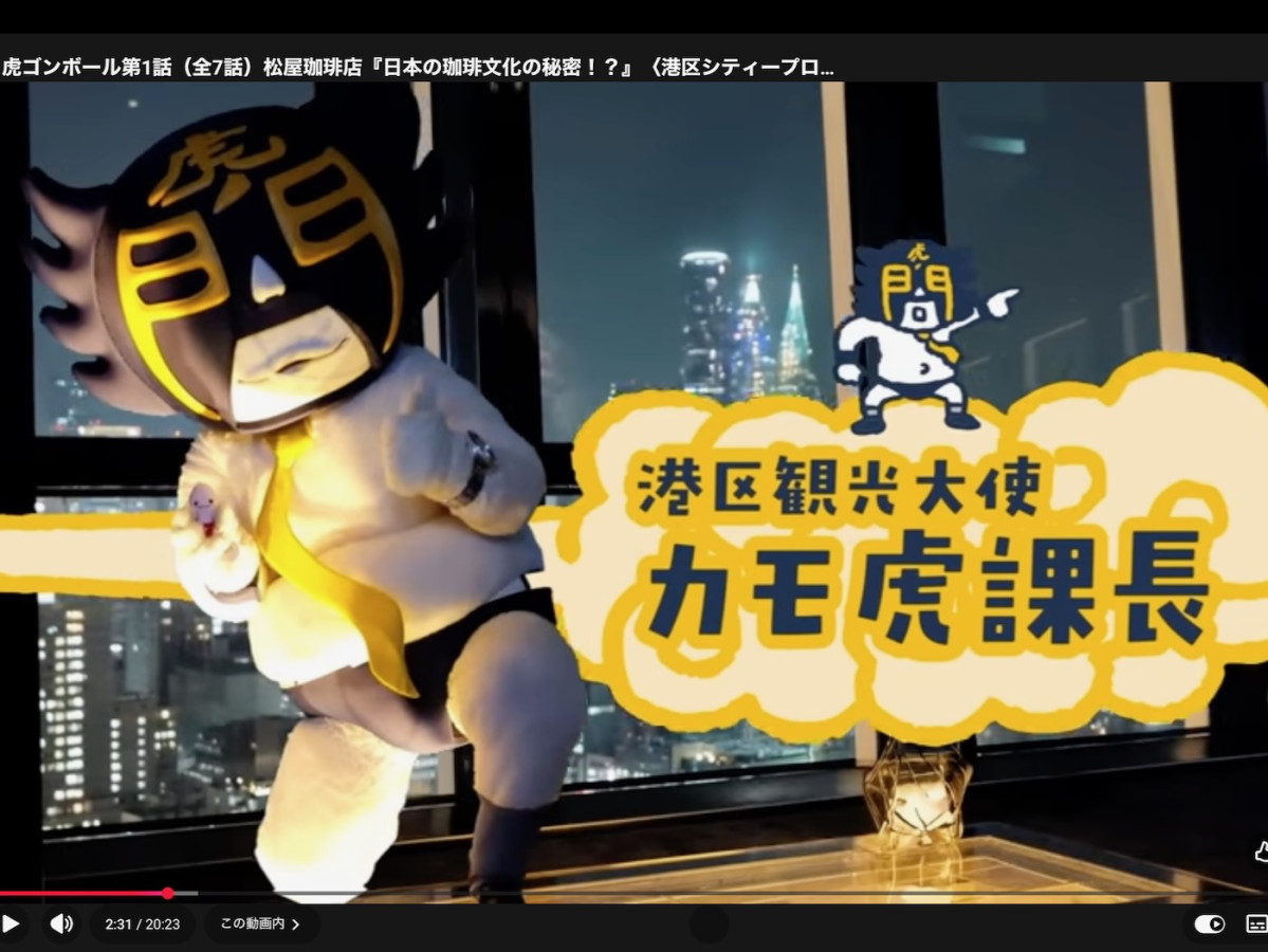 港区観光大使を務めるキャラクター「カモ虎課長」が現在、新橋・虎ノ門エリアに関連する店や人物などを紹介する動画をユーチューブで公開している。