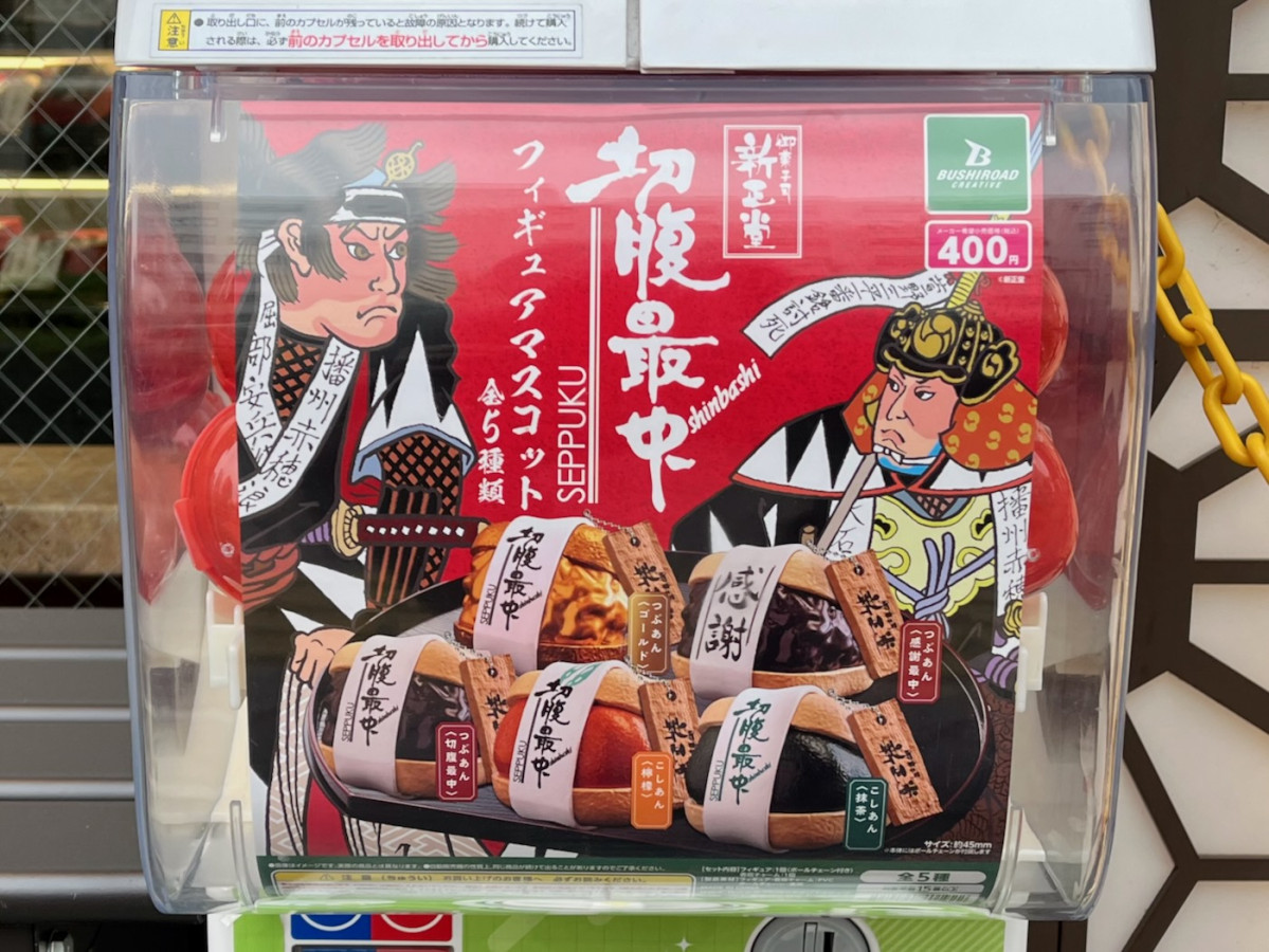 「新正堂」(港区新橋4、TEL 03-3431-2512)が10月、自社商品の「切腹最中」をモチーフにしたカプセルトイの販売を始めた。